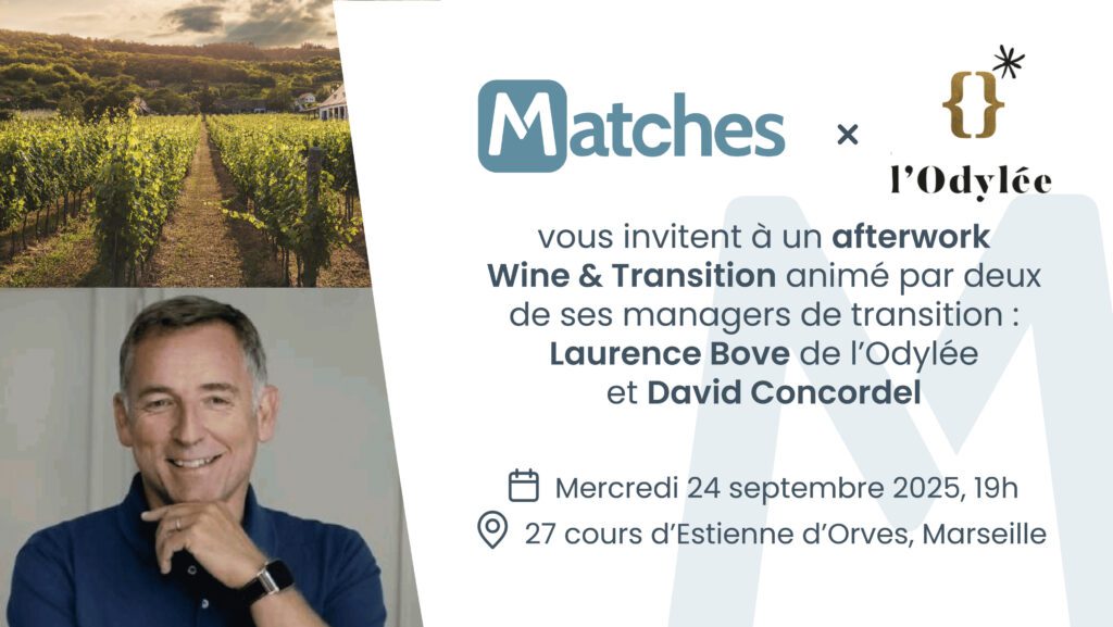 Mercredi 24 septembre en fin de journée, l’équipe Management de Transition de Matches a eu le plaisir d’accueillir son pool de Managers de Transition du Sud pour un événement convivial et enrichissant : un Afterwork Wine & Transition. Le choix de ce format n’est pas anodin : il souligne notre conviction que le succès des missions de transition repose autant sur l’expertise technique que sur la qualité et la force du réseau humain. Nos Managers de Transition ont des talents cachés que nous avons eu plaisir à dévoyer ce soir ! C’est le cas de Laurence Bove et David Concordel.